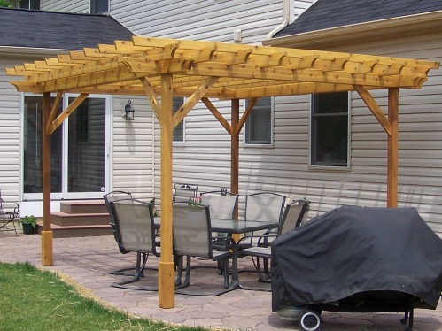 This Freestanding Post and Beam Pergola adds the much needed shade on this rear patio during the early afternoon hours. The western red cedar adds character that can only be achieved with natural wood. Two coats of clear sealer were applied prior to installation to enhance the natural colors and to protect and strengthen the wood. We will design a custom pergola to fit your garden space and meet your needs. The design and estimate are FREE.